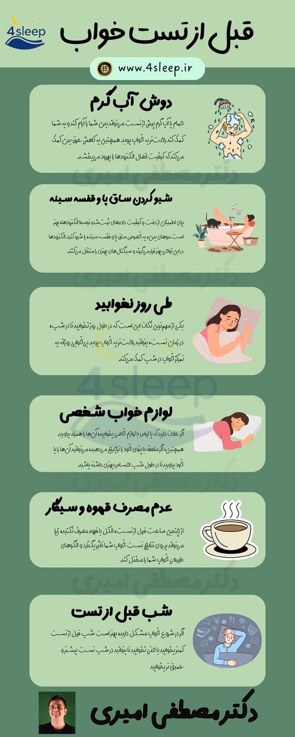 - چگونه تشخیص داده میشود؟ تست خواب میتواند دلایل احتمالی بیخوابی مانند آپنه خواب یا سندرم پای بیقرار را شناسایی کند.